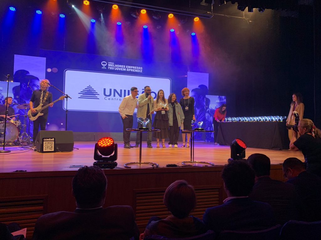 “Com muito orgulho e satisfação venho anunciar que a Unileão recebeu o prêmio nacional de Melhores Empresas para o Jovem Aprendiz pelo CIEE [Centro de Integração Empresa-Escola], estando entre as 10 melhores empresas do país. Além da premiação, também fomos destaque nacional nas categorias: integração, desenvolvimento pessoal, diversidade e inclusão”, anuncia a professora Thatiana Espínola Parente Felício, coordenadora de Desenvolvimento Humano. Ela representou a instituição na cerimônia ocorrida em São Paulo, na noite desta segunda-feira, 11 de dezembro, quando subiu ao Teatro CIEE para erguer cinco troféus.