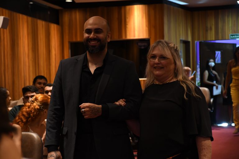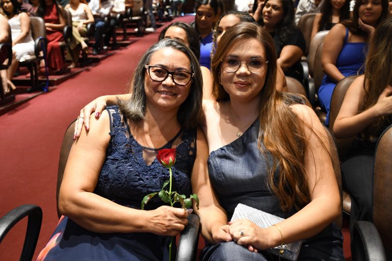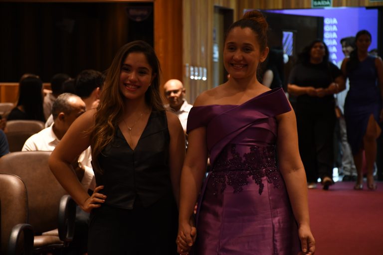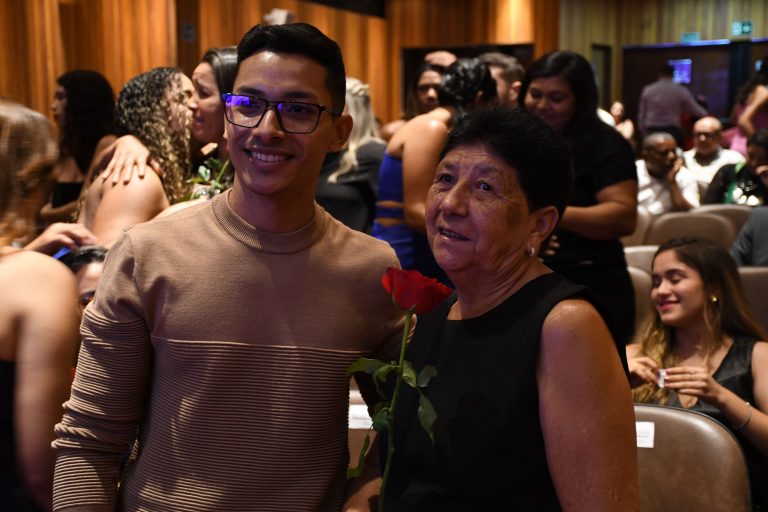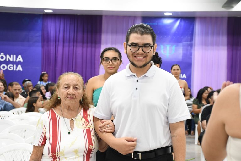 Na quinta-feira (29), o auditório do Bloco E da Unileão foi tomado por emoção, olhares orgulhosos e uma atmosfera de conquista. Entre tantos estudantes, uma presença se destacou de forma especial: Regina Roque, de 63 anos, atualmente no décimo semestre do curso. Prestes a se formar, ela participou da cerimônia acompanhada pelo filho Lucas, que foi seu padrinho na noite simbólica.