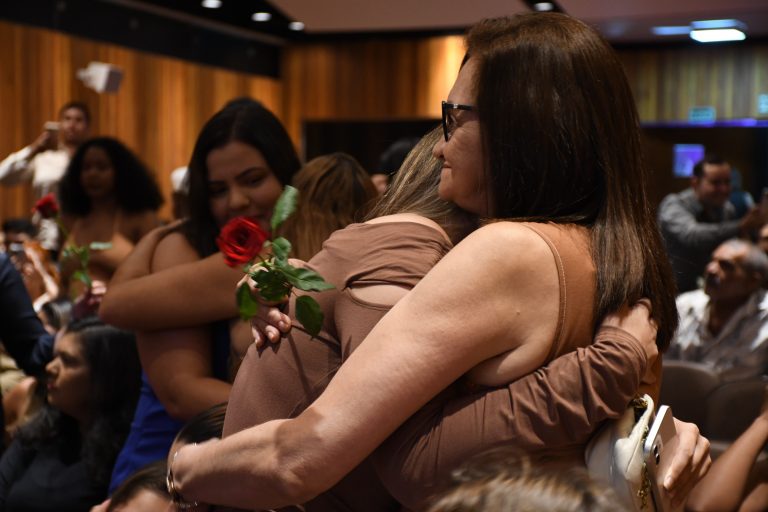 Para Regina, a graduação foi mais do que uma conquista. Ela afirma ter se transformado como pessoa ao longo da jornada. “Quando entrei, eu era uma. Agora, saindo, sou outra. A gente muda, e eu mudei muito. Sou muito feliz por estar aqui nessa casa. Agradeço demais aos professores que se dedicaram tanto e aos alunos. Me senti muito acolhida”, disse, expressando sua gratidão.