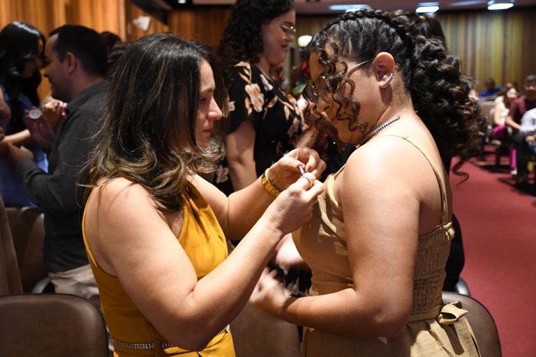 Na sexta-feira (30), a cerimônia ganhou novos rostos e expectativas. Desta vez, os protagonistas foram os estudantes do primeiro semestre, que iniciam agora sua trajetória na Psicologia. Para eles, o botton representa mais que um símbolo de boas-vindas: é o primeiro passo em direção a uma jornada de descobertas, desafios e propósito.