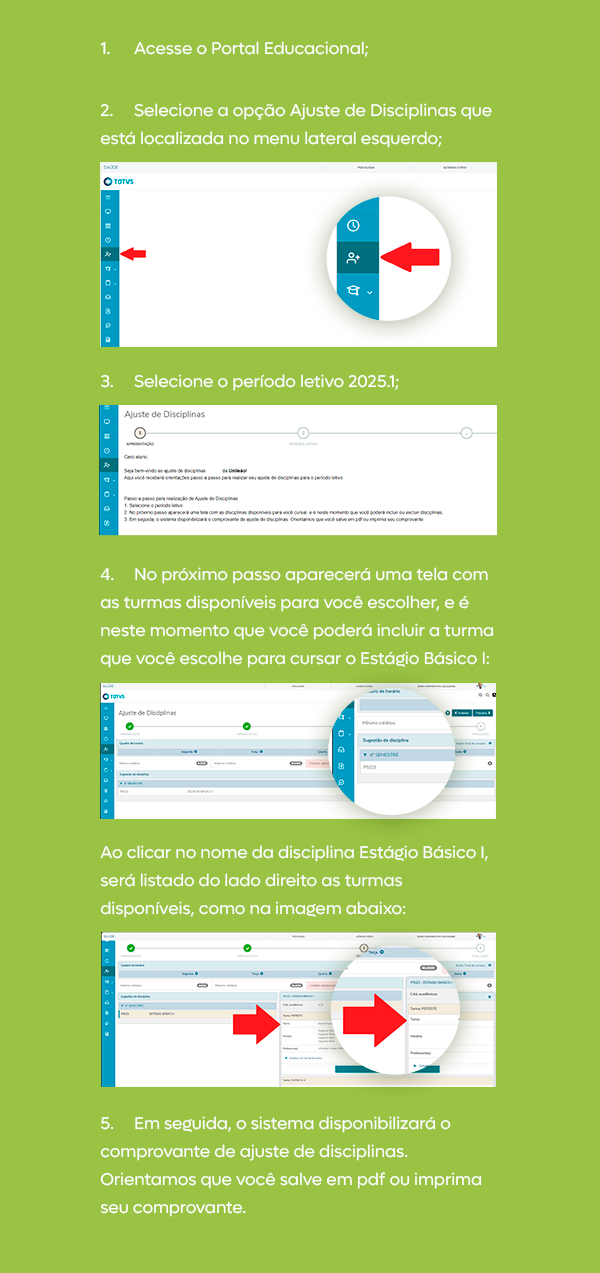 A instituição disponibiliza aos alunos e às alunas do curso de Psicologia um passo a passo para a matrícula on-line nas disciplinas de Estágio Básico: